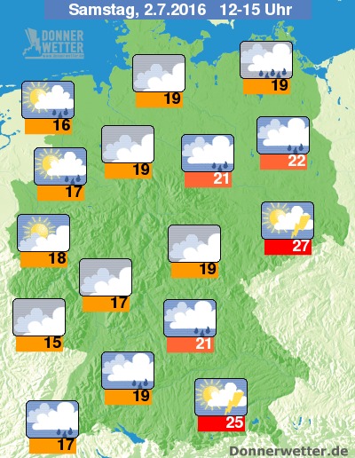 Vielerorts bedeckt zeigt sich der Himmel am Samstagmittag und am frühen Nachmittag, die besten Chancen auf ein paar Sonnenstrahlen bestehen zwischen Mittel- und Niederrhein. Mit Schauern muss vor allem zwischen Elbe und Oder sowie im Südwesten des Landes gerechnet werden, im Südosten sind zudem einzelne Gewitter möglich.