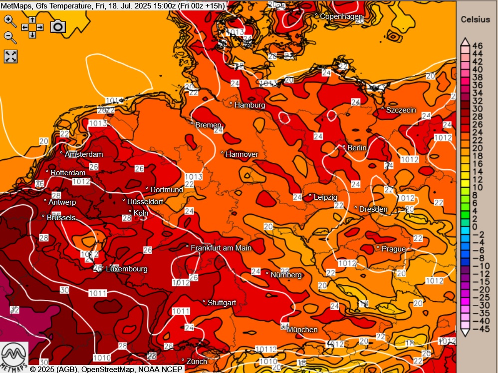 Am Freitagnachmittag sind im Norden und Osten bei wechselnder oder starker Bewölkung noch zeitweise Schauer und einzelne Gewitter möglich. Lokale Unwetter können vor allem in Schleswig-Holstein nicht ausgeschlossen werden. In den übrigen Landesteilen dominiert heiteres Juliwetter, im Süden und Südwesten ist es auch sonnig, und es bleibt trocken.