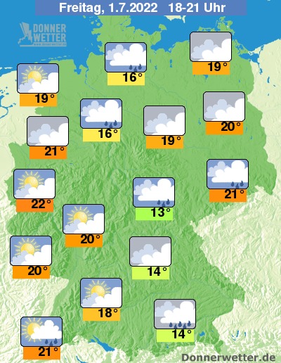 Heute Abend klingen die Niederschläge im Land immer weiter ab, am ehesten sind noch an den Alpen und gebietsweise im Norden und Osten einzelne Schauer möglich, dazu bleibt es hier meist stark bewölkt. Im übrigen Süden und Westen lockert und heitert es immer weiter auf. Die Temperatur liegt bei 13 Grad in Jena und bis 22 Grad in Köln.