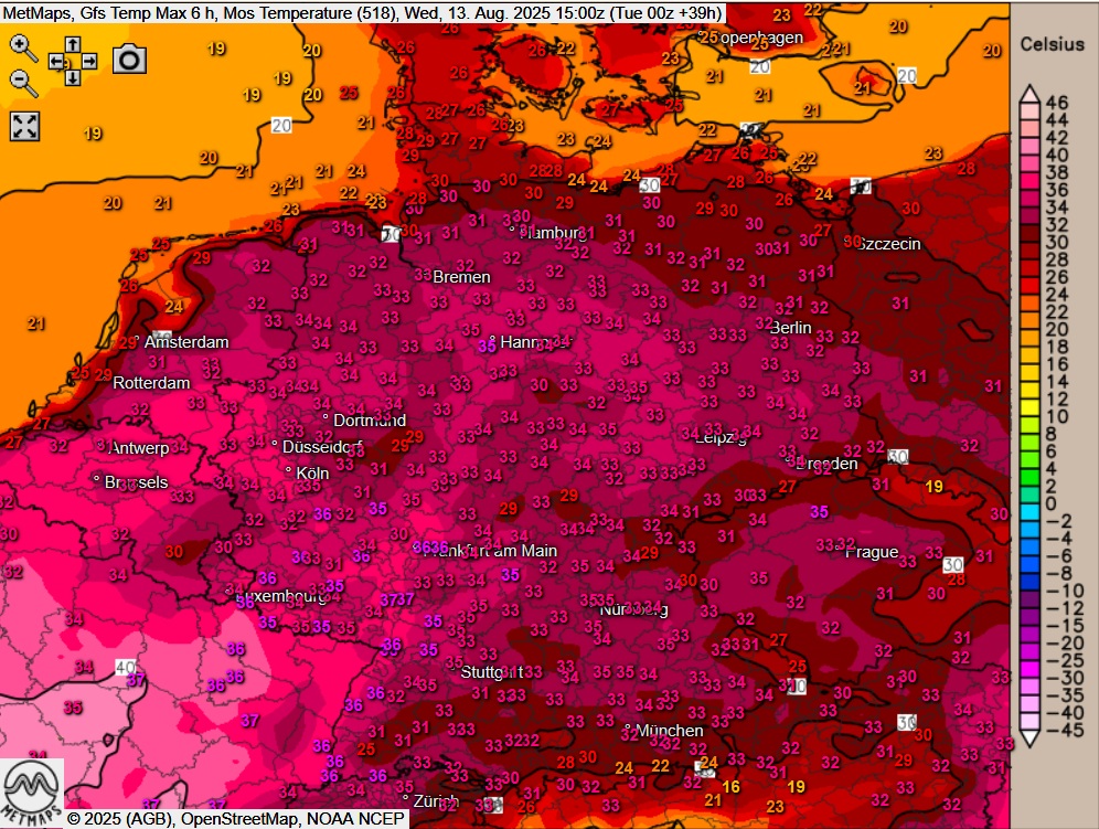Schwül-heiße Wochenmitte bei Höchstwerten um 38 Grad - fallen heute alte August-Temperaturrekorde?