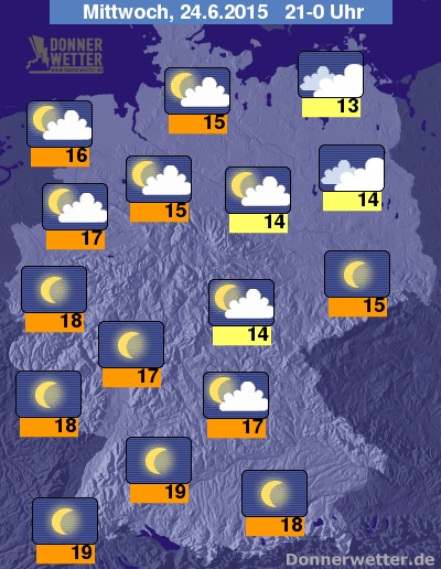 Heute Abend zeigt sich der Himmel im Süden und zunehmend auch in der breiten Mitte der Republik sternenklar. Im Norden zieht meist aufgelockerte, teils auch noch starke Bewölkung durch. Es bleibt überall trocken. Die Abendtemperatur liegt bei 19 Grad im Breisgau und etwa 13 Grad an der Mecklenburger Seenplatte.