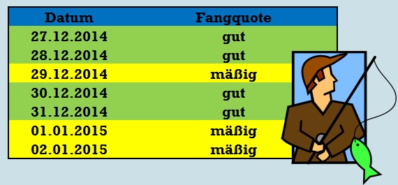Während des Durchzugs von Regengebieten herrscht gutes Angelwetter.