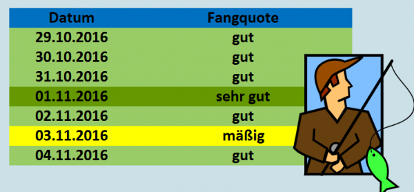 Meist guten Fangbedingunen sehen sich Angler in den letzten Oktobertagen ausgesetzt; vor allem dem Einfluss des Mondes - am Sonntag ist Neumond - ist dies zu verdanken.