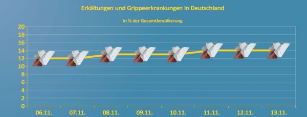 Daher bewegen sich die Grippe- und Erkältungszahlen auch in dieser Woche auf einem jahreszeitlich hohen Niveau: Zwischen 12 und 14 Prozent der Bürger sind aktuell von einem Winterleiden betroffen.