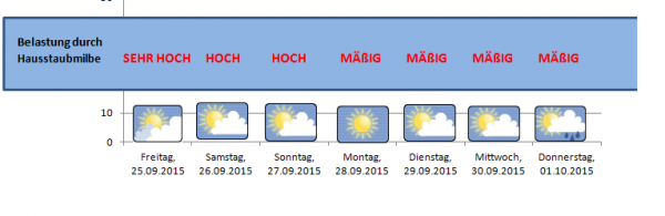 Hohe Hausstaubkonzentrationen am Freitag und Samstag.