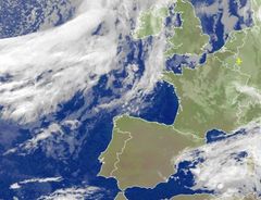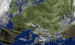 Satellitenbild: Warmfront erreicht Mitteleuropa