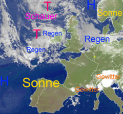 Mischung aus Sonne - Regen- und Schauerwolken über Europa verteilt