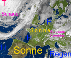 ![]() | | Satellitenbild 03.04.2017 Schauer und Gewitter in Süddeutschland |