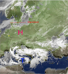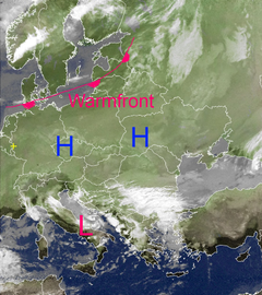 Wolken über der Nordsee und Norddeutschland trennen unterschiedlichen Luftmassen.