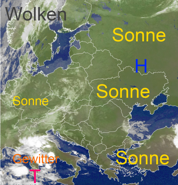 Das Tief über dem Mittelmeer produziert hingegen weitere kräftige Schauer- und Gewittercluster, die sich über Regionen Südeuropas entladen und örtlich auch wieder Unwetterpotential in sich haben.