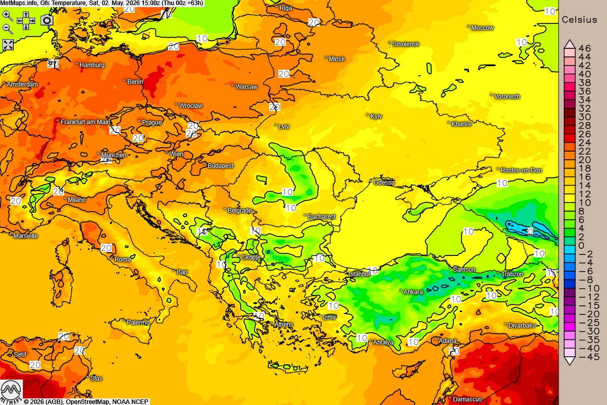 Wer also über die Maifeiertage Sonne und Wärme sucht, ist dieses Jahr im heimischen Garten tatsächlich besser aufgehoben als bei einem Trip in den Südosten Europas – der Frühsommer-Express macht derzeit einen großen Bogen um die Ägäis.