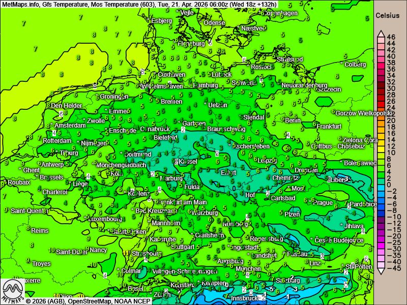 Auch bis in den Beginn des Monats Mai hinein bleibt das Risiko für Spätfrost bestehen. Die kommenden Tage zeigen einen deutlichen Temperaturrückgang mit einem Kaltlufteinbruch zum Wochenstart. Entsprechend steigt regional auch die Wahrscheinlichkeit für Nachtfrost wieder an.