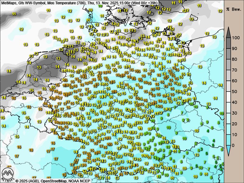 Die sehr milde Wetterphase erreicht am Donnerstag mit Höchsttemperaturen von regional fast 20 Grad ihren Höhepunkt. Mit hoher Wahrscheinlichkeit liegen wir verbreitet bei Werten von 17 bis 19 Grad.