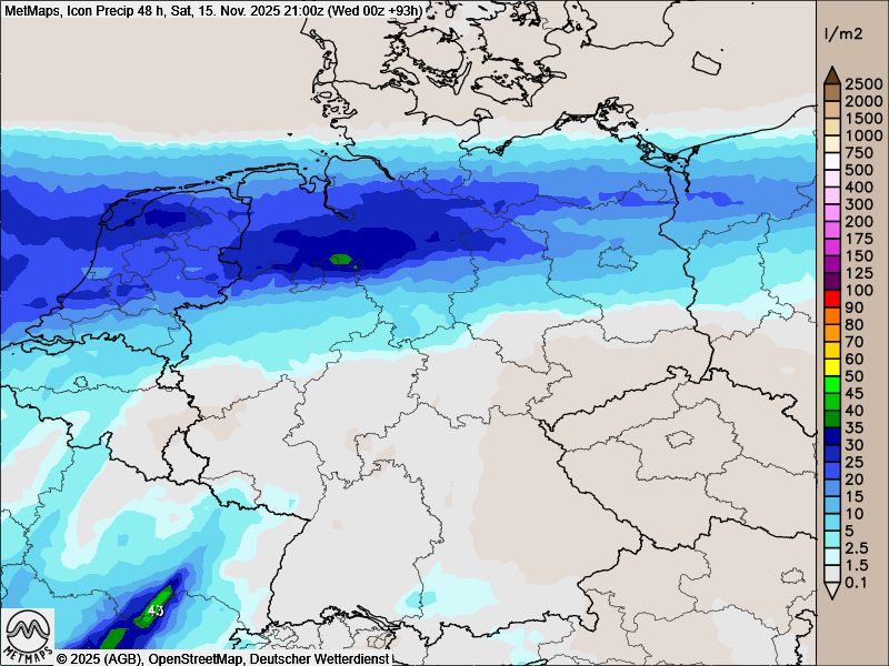 Am Freitag/Samstag folgt dann im Norden viel Regen (siehe ICON-Regenmenge).